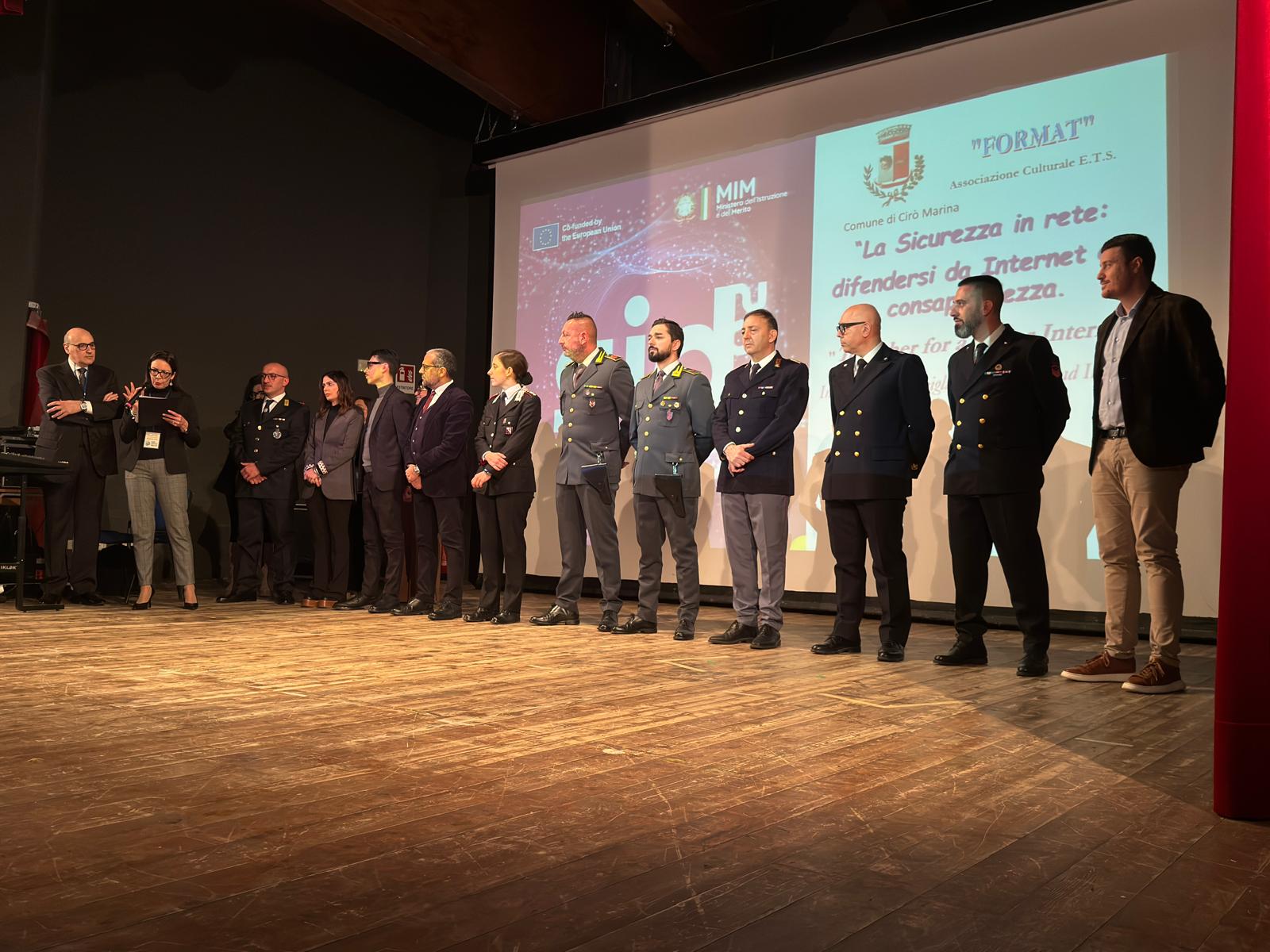Un’alleanza educativa e istituzionale. L’incontro ha visto la partecipazione corale delle massime autorità cittadine e delle forze dell’ordine, a testimonianza di quanto il tema del cyberbullismo e della sicurezza informatica sia prioritario nell'agenda sociale. Al tavolo dei relatori e tra le autorità presenti: l’Amministrazione Comunale di Cirò Marina, rappresentata dal Sindaco F.F. dott. A. Aprigliano e dall’Assessorato alla Cultura e Pubblica Istruzione rappresentata dalla dott.ssa M. Panebianco; il consigliere regionale della Calabria Sergio Ferrari già Sindaco di Cirò Marina, l’Arma dei Carabinieri Compagnia di Cirò Marina con il capitano M. Iacono e la Polizia Locale di Cirò Marina con il dott. A. Grillo, per un focus sulla legalità nel territorio; la Sezione Operativa per la Sicurezza Cibernetica della Polizia Postale di Crotone con il dott. O. Chimenti, che ha fornito consigli pratici e tecnici per prevenire truffe, adescamenti e furti d'identità; la Guardia di Finanza e la Capitaneria di Porto; i Dirigenti Scolastici degli istituti coinvolti, I.C. “G. Gangale” e I.C. “Casopero-Filottete-Crucoli” di Cirò Marina; l’Equipe Multidisciplinare ATS di Cirò Marina, con la dott.ssa P. Liotti e il dott. M. Dima, per analizzare gli aspetti psicologici e sociali del benessere digitale, i risvolti psicologici e sociali legati all'uso dei social media e delle nuove tecnologie.
